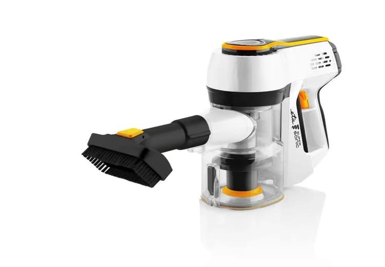ETA Supersonic 1231 90000 je vysávač dva v jednom, pretože sa dá používať ako tyčový aj ako ručný. Ten sa hodí napríklad na vysávanie auta, prípadne horšie dostupných miest v domácnosti. Výdrž batérie je primeraná, na jedno nabitie zvláda byť v prevádzke 40 minút a následné nabíjanie trvá 4 hodiny. V balení je bohaté príslušenstvo a našli sme tu všetko potrebné na vysávanie rôznych povrchov. Sací výkon je o niečo slabší, vysávač skôr uspokojí menej náročných používateľov. Mínus si zaslúži aj malá nádoba na prach s objemom 0,45 l. Plusom je veľmi dobrá ergonómia, nízka hmotnosť, LED diódy na hubici či dobre nastavená cena.