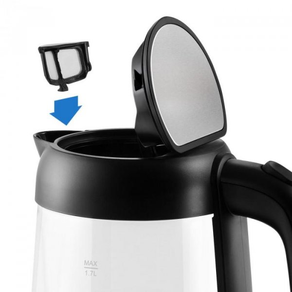 Kanvica je vďaka svojmu sklenenému prevedeniu a modrému podsvieteniu netradičná a zapadne do každej modernej kuchyne. Bezpečnostné prvky, automatické/manuálne vypínanie, vyberateľný vodný filter hrajú v prospech tohto modelu. Ak máte v domácnosti tvrdšiu vodu, budete sa musieť zmieriť s tým, že kanvicu treba čistiť častejšie, keďže cez sklo vidieť každý nedostatok.